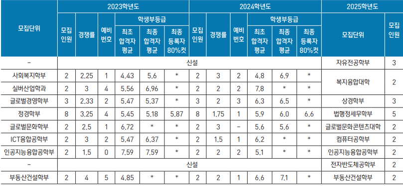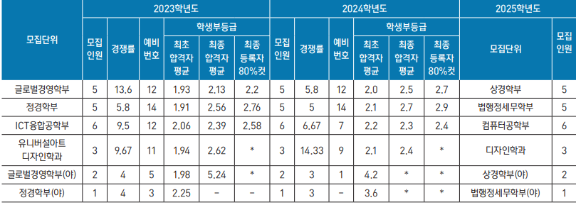학생부종합(학생부전형) 2023년 2024년 전형 결과