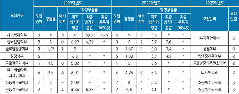 학생부교과(장애인 등 대상자전형, 정원 외) 2023년 2024년 전형 결과