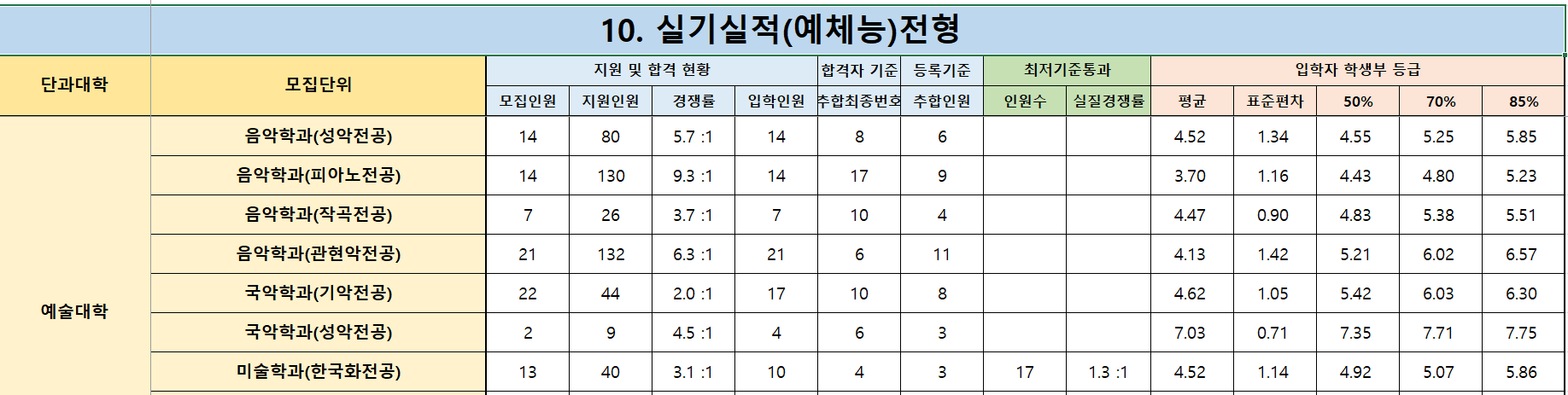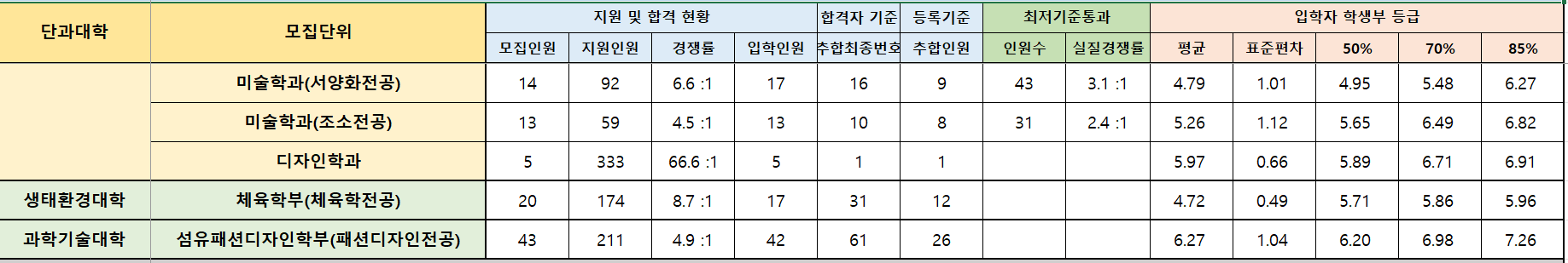 경북대학교 2024학년도 수시 모집 실기실적(예체능)전형 입시 결과