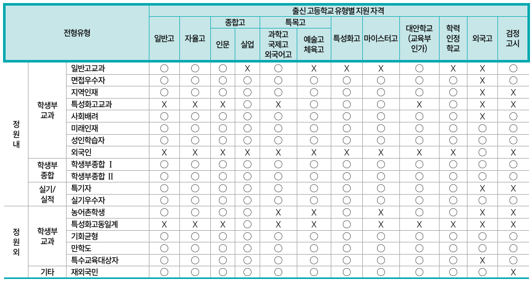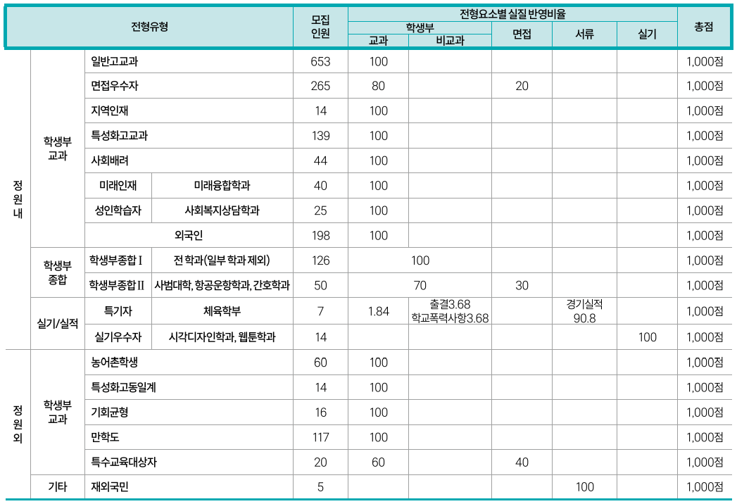 - 학생부종합전형은 정성평가를 실시하며, 등급이 있는 전 과목 평균입니다.