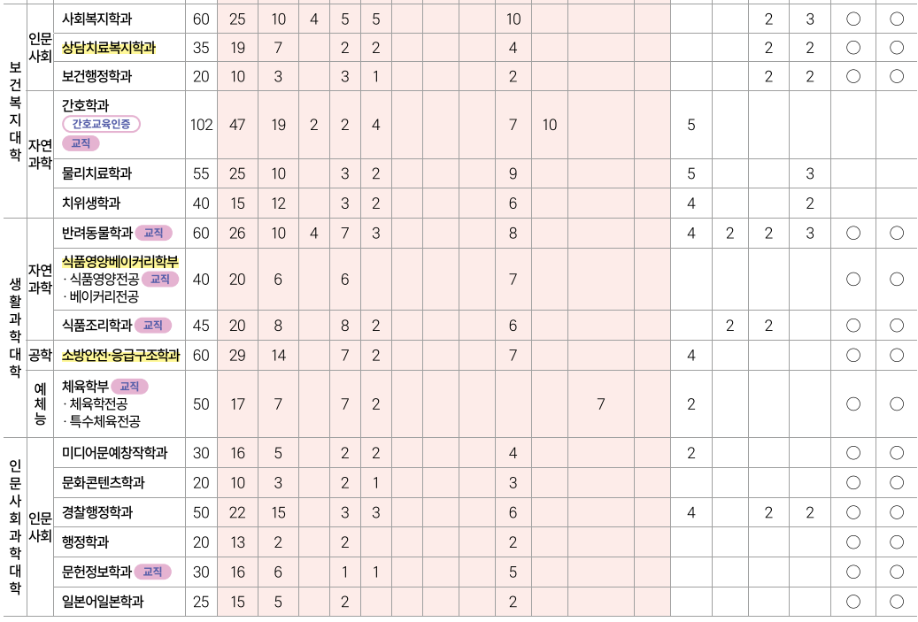 - 특성화고, 지역인재, 사회배려전형은 모집인원이 적어서 최저를 따로 제공하지 않습니다.