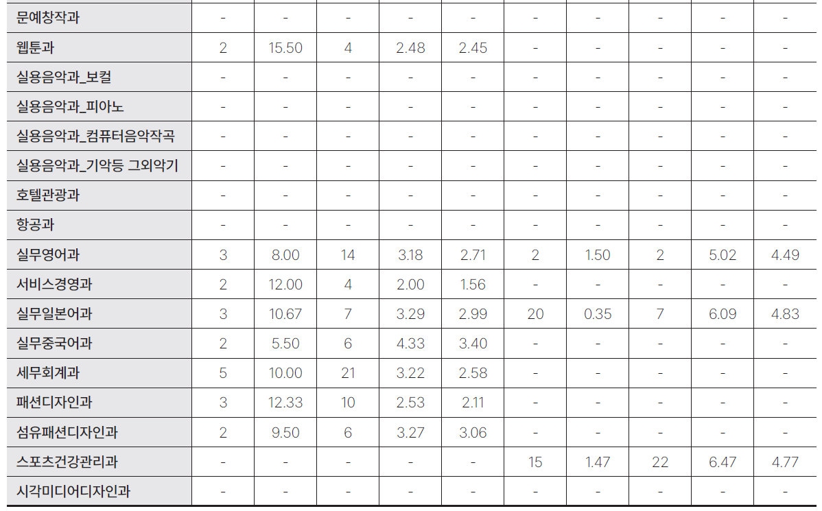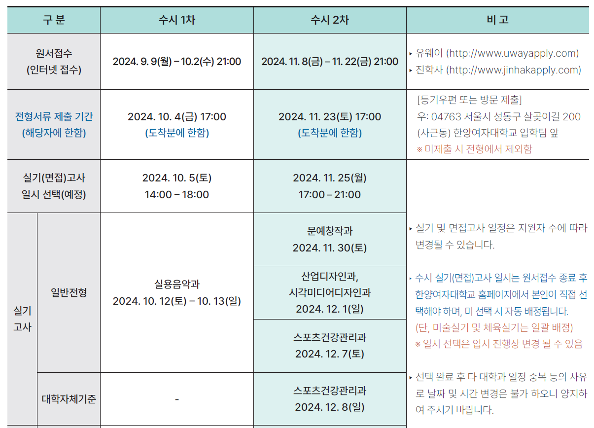 한양여자대학교 2024학년도 수시2차 입시결과 자료