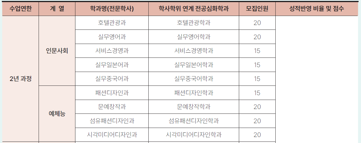 한양여자대학교 2025학년도 수시 모집학과 및 모집인원