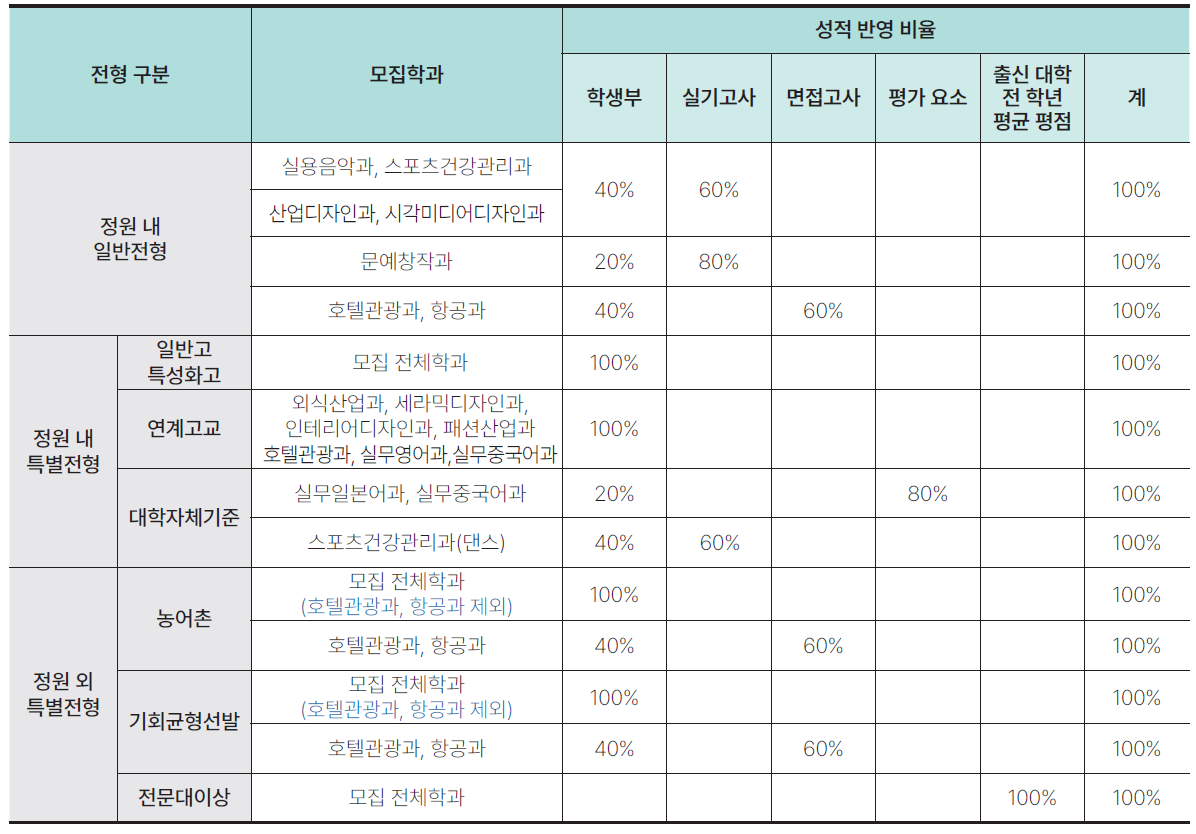 - 전형별, 학과별 총점 순위에 의거 선발합니다.