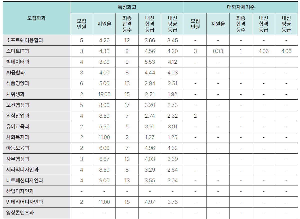 한양여자대학교 2024학년도 수시1차 입시결과자료