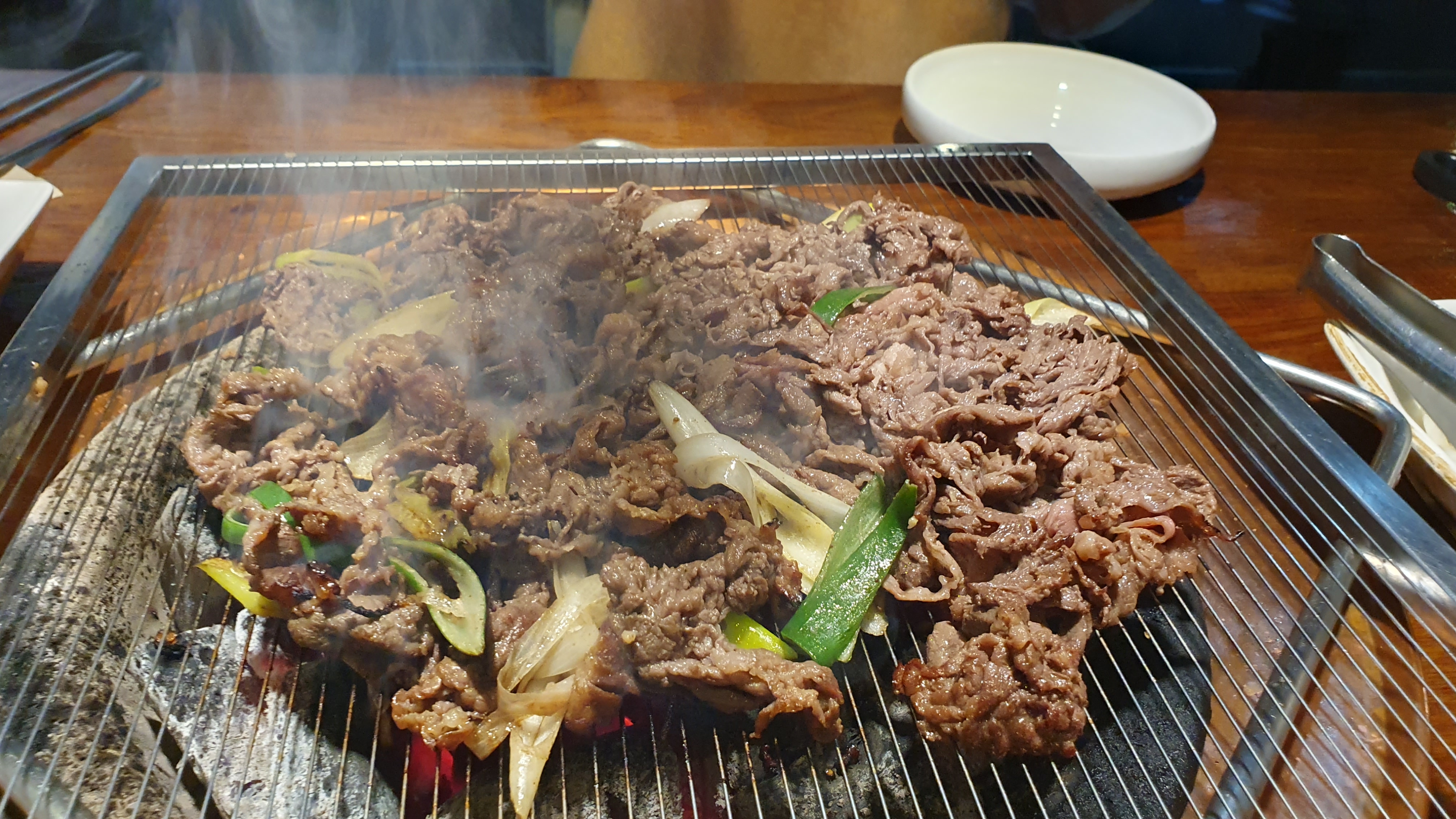 평양불고기입니다. 국물없이 숯불직화 위에 직원께서 아주 맛있게 다 구워주십니다.
